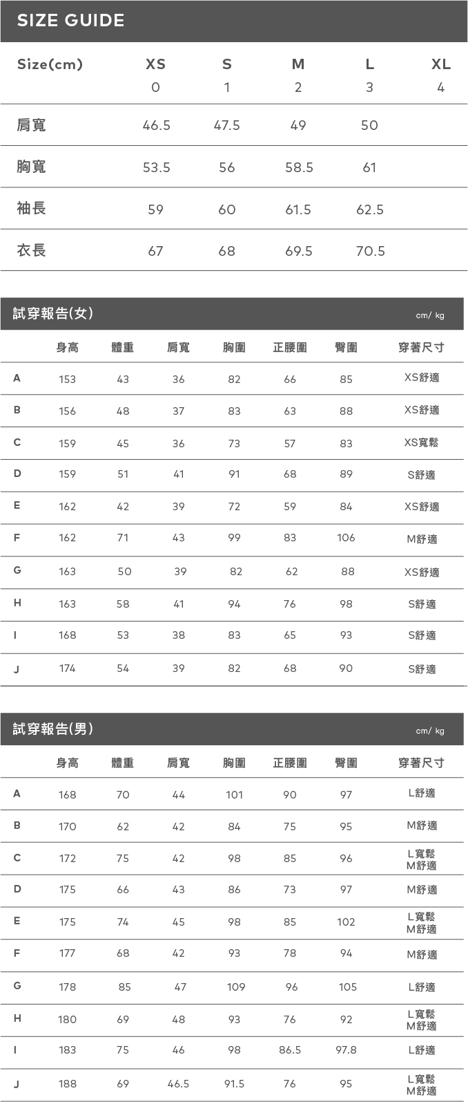 身高 185 肩寬:48.5 胸圍:96