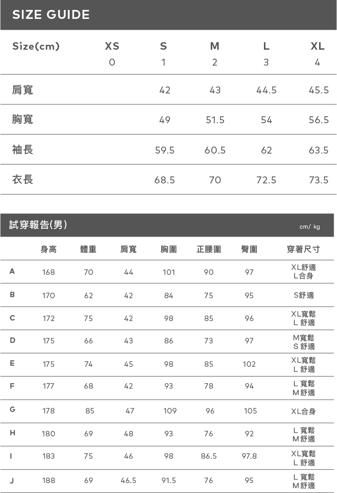 身高188 /肩寬46.5 /胸圍91.5