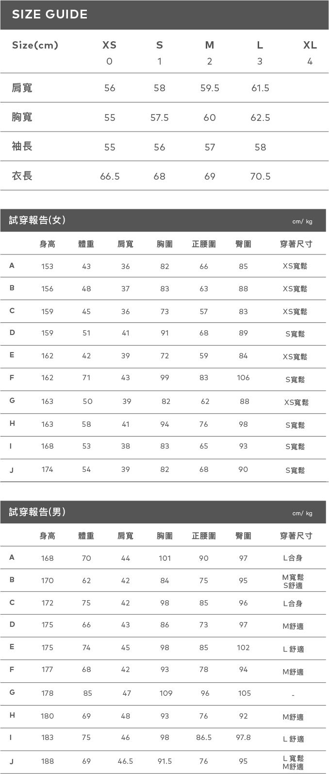 身高177 /肩寬40 /胸圍80