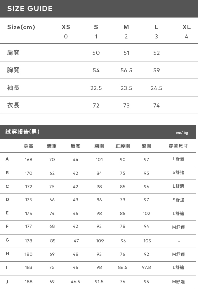 Leon 身高:181 肩寬:48.5 胸圍:95
