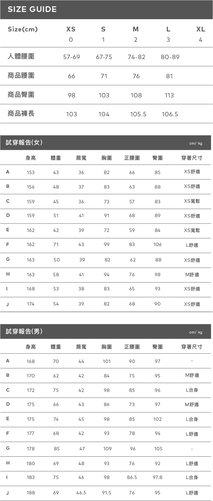 身高174 腰圍:66 臀圍:91