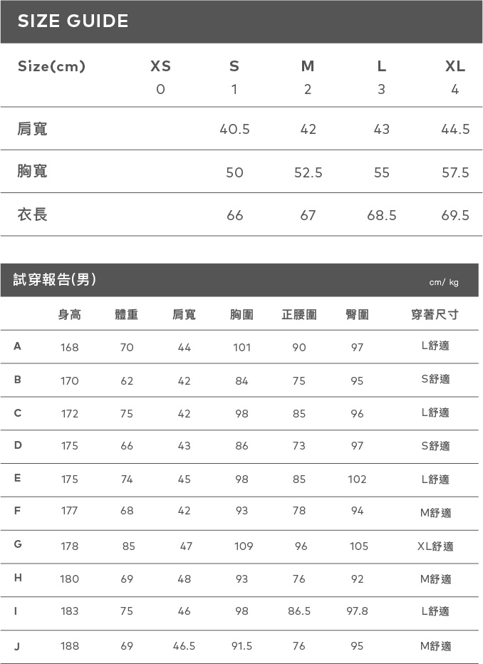 身高 185 肩寬:48.5 胸圍:96