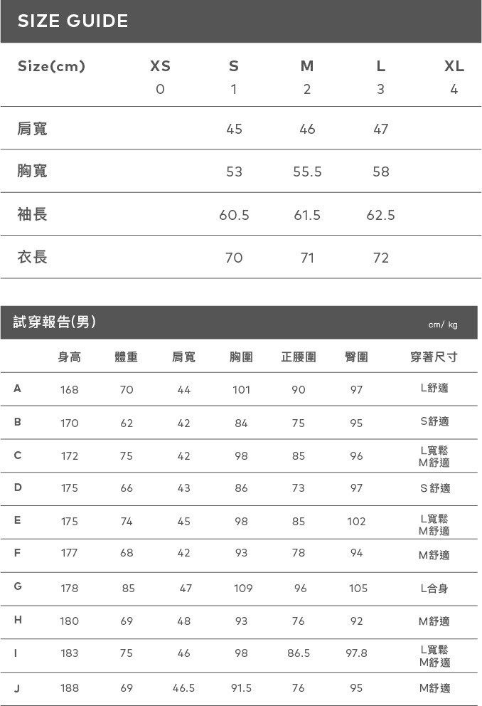 穿著L號