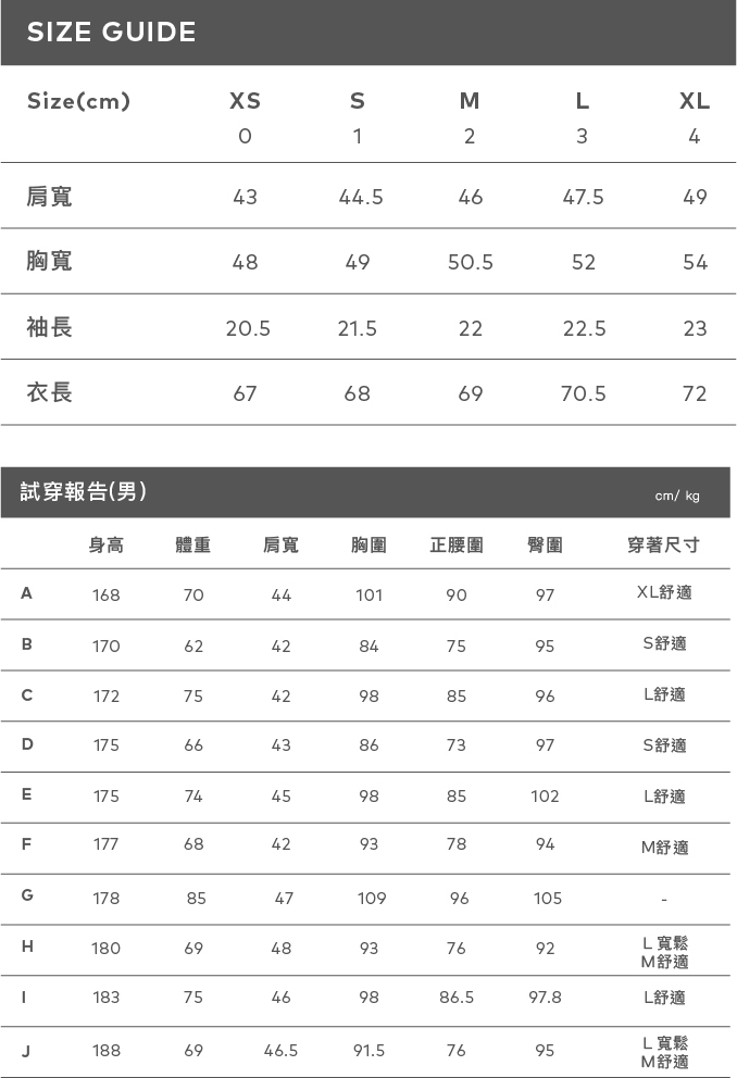 Leon 身高:181 肩寬:48.5 胸圍:95