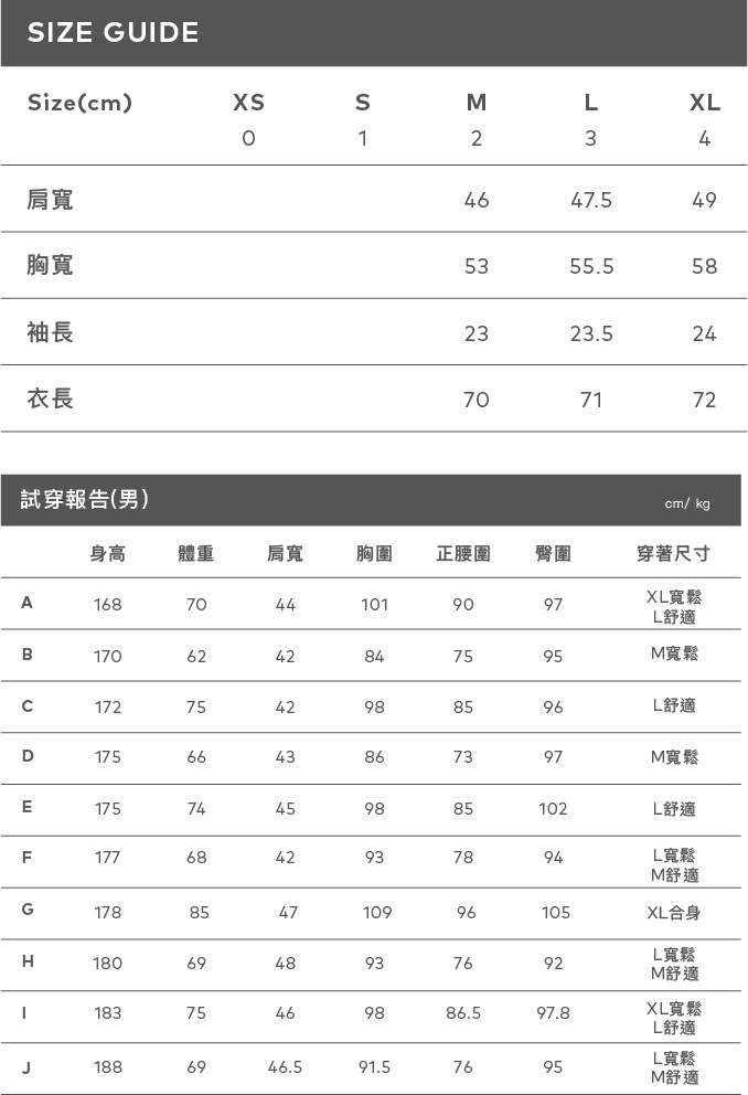 信助 身高 179 肩寬:46 胸圍:90
