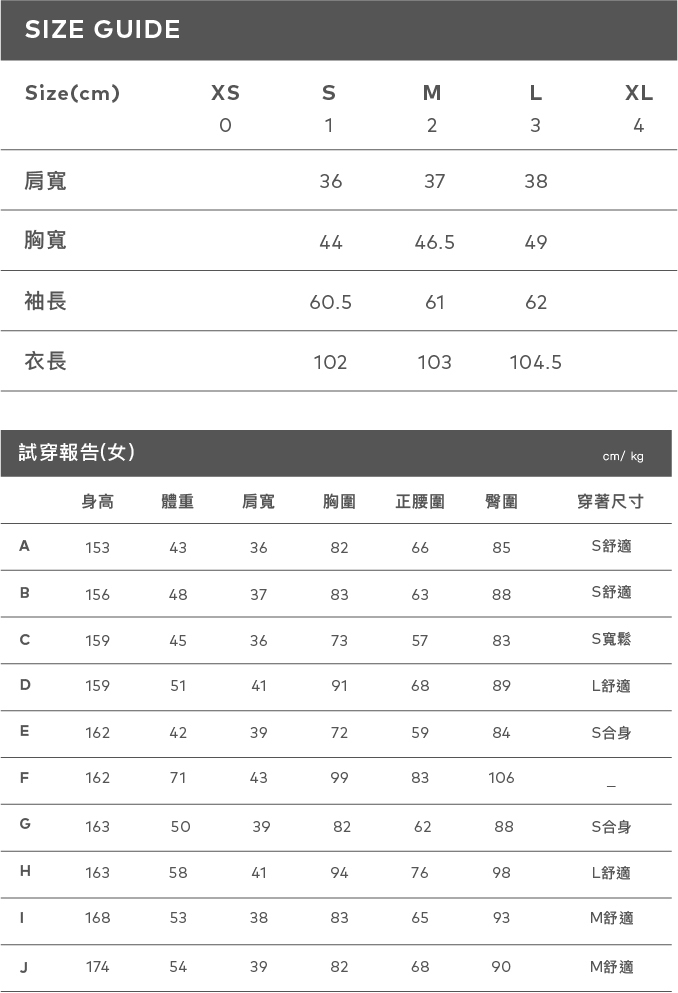 身高 168 肩寬:40 胸圍:76 腰圍:62